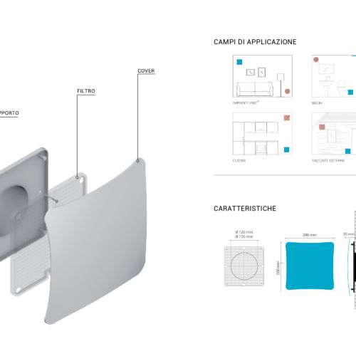 La griglia è costituita da 3 elementi fondamentali con innovativo sistema di aggancio magnetico e ha il passaggio aria laterale e frontale: